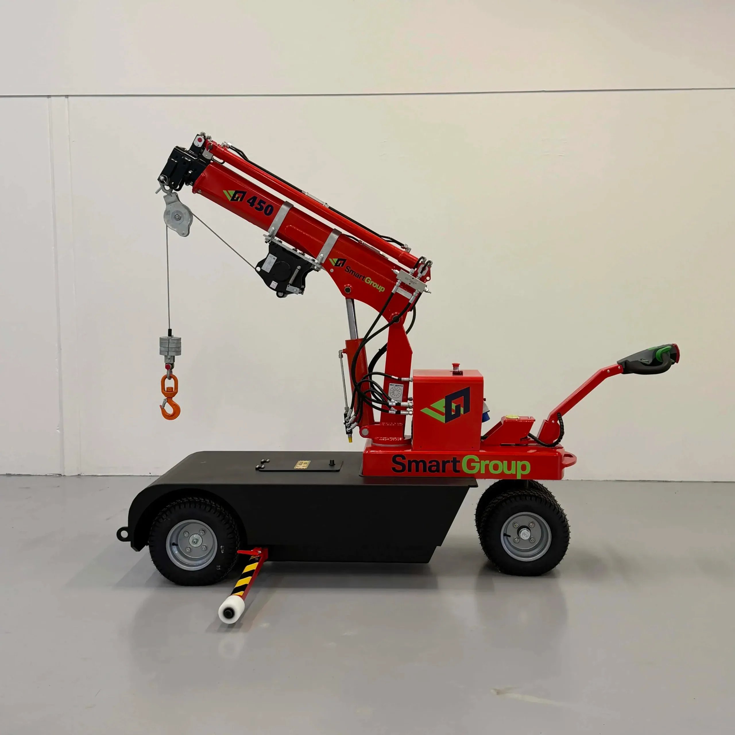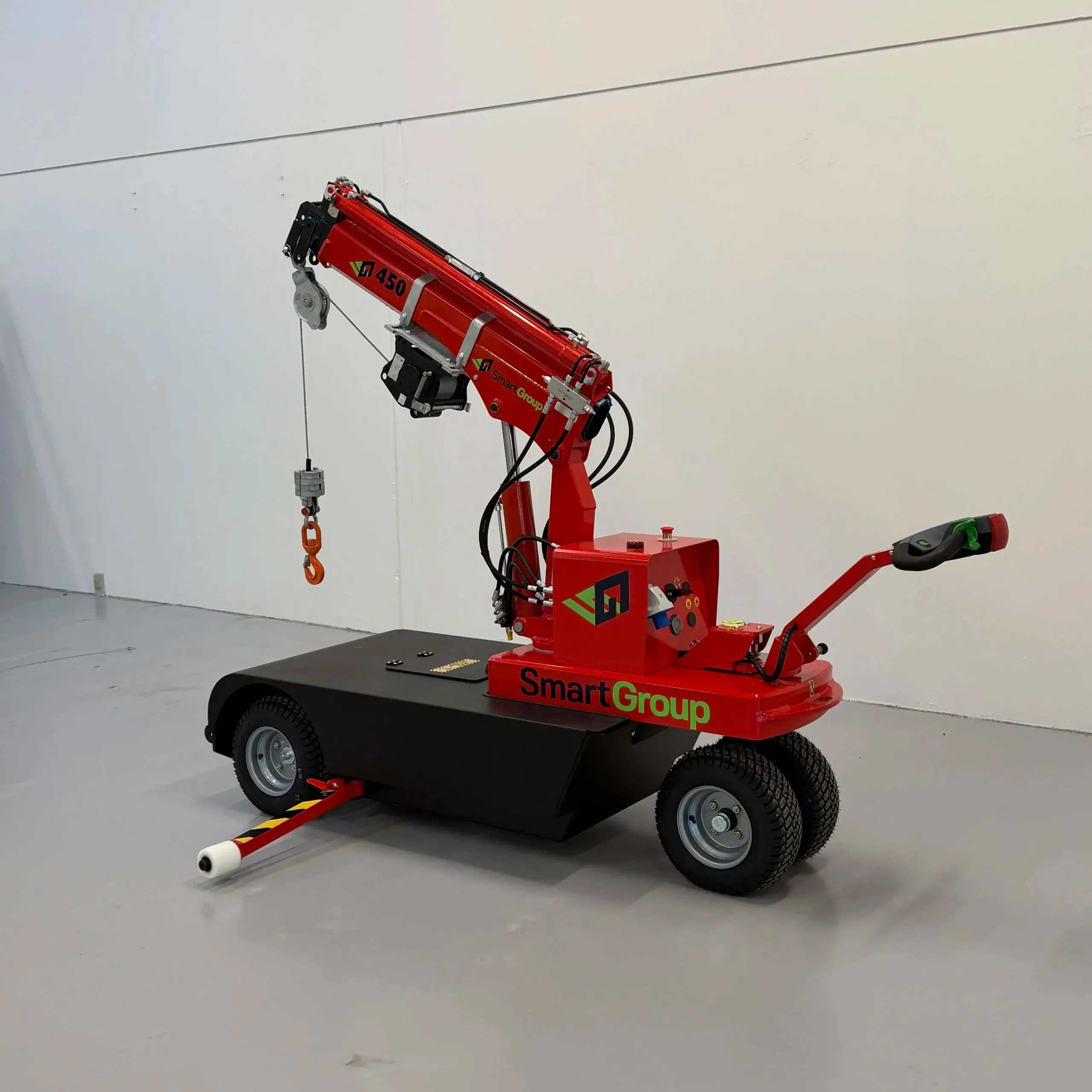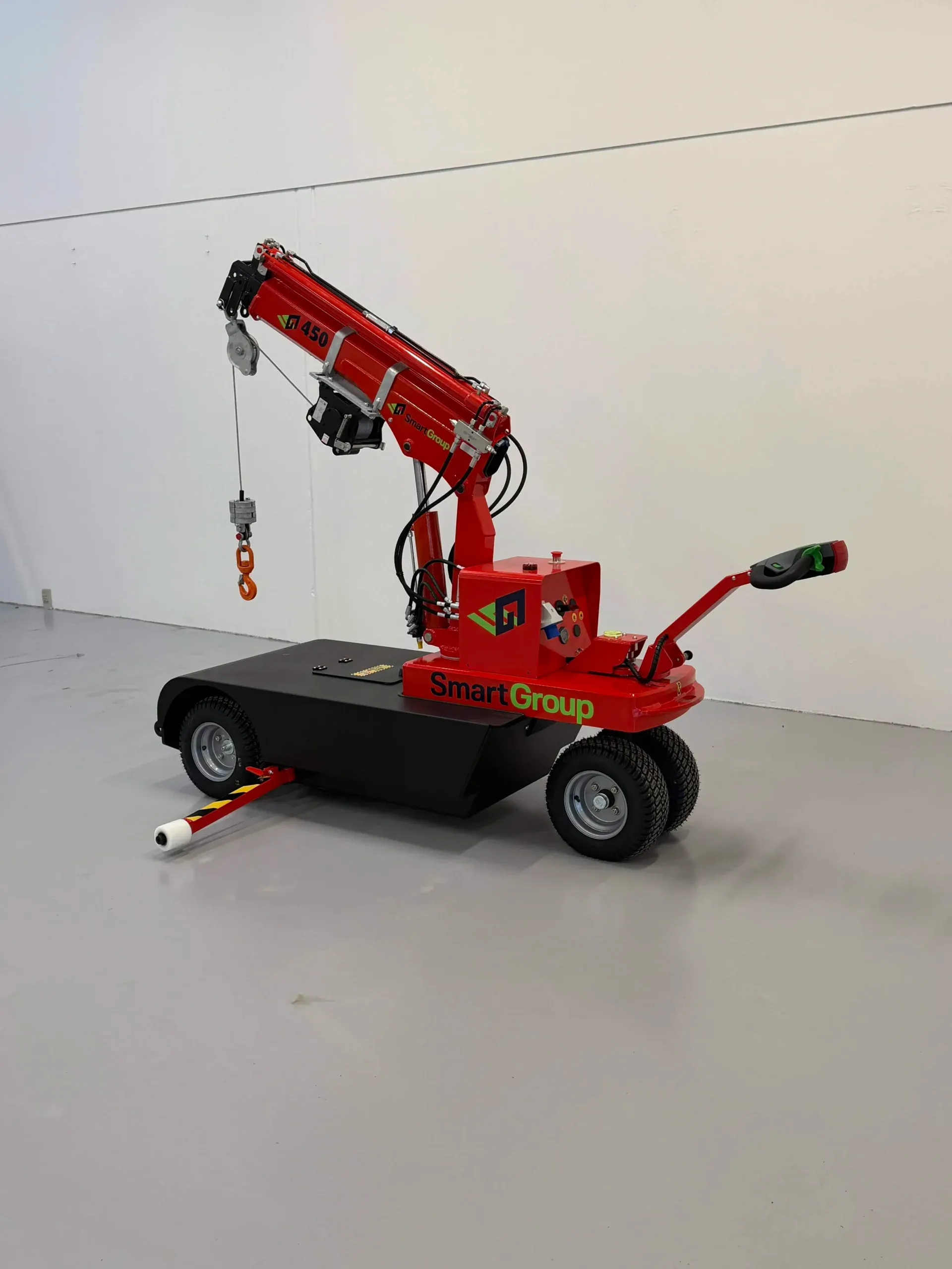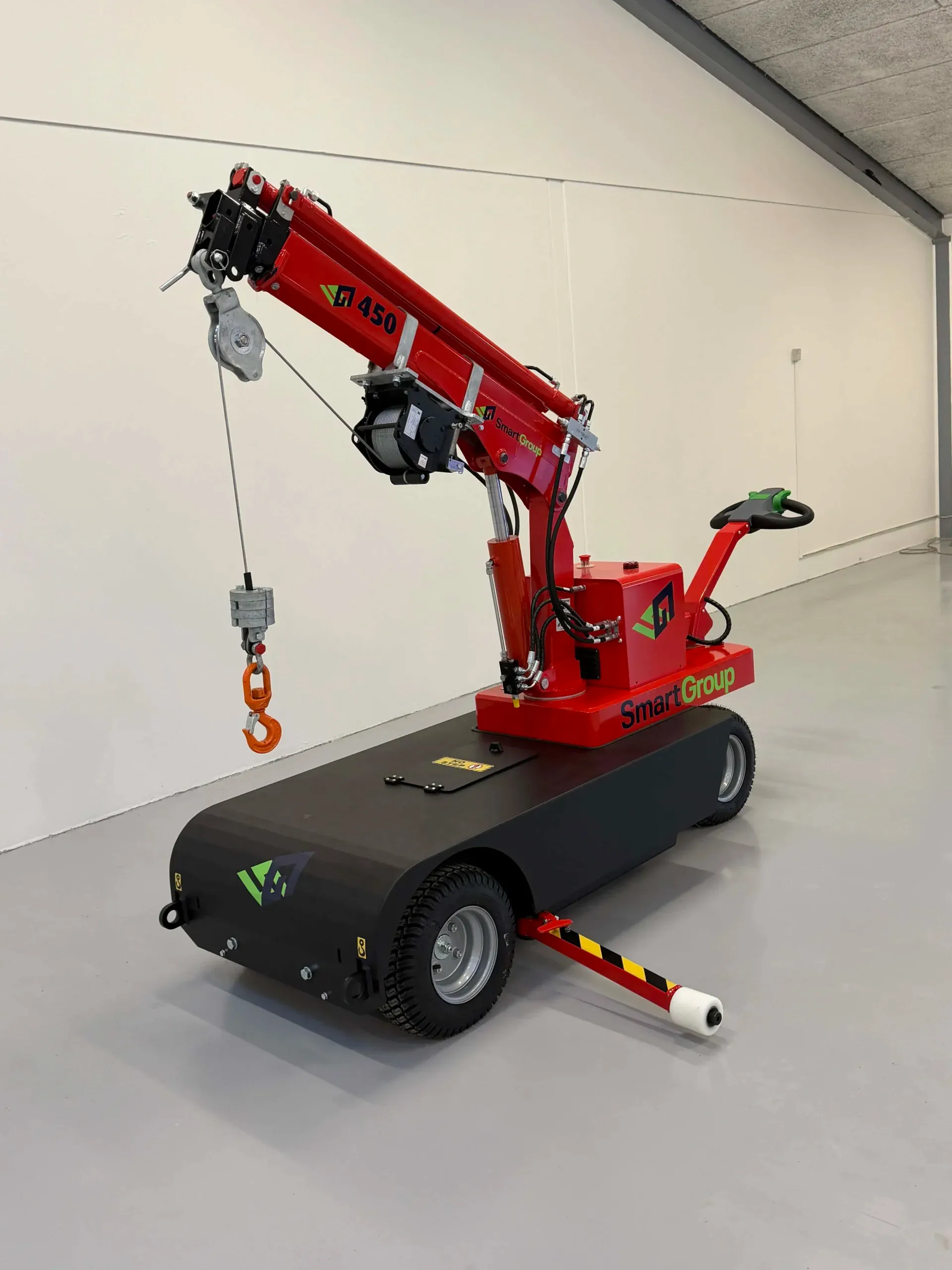SG450W er en kompakt og kraftig minikran med hydraulisk spil, bygget på den velkendte og afprøvede SG450-platform. Maskinen er udviklet til effektiv og sikker materialehåndtering i industri, produktion og på byggepladser, hvor der er behov for præcise løft og høj fleksibilitet.